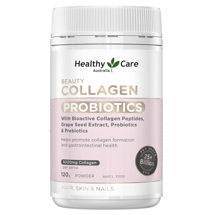Healthy Skin and a healthy digestive system go hand in hand. The Healthy Care Beauty Collagen Probiotics formula helps maintain skin health from the inside out. Formulated with 5000mg of Bioactive Collagen Peptides per serve and specially selected strains of Probiotics that will help to promote a healthy digestive system, whilst promoting collagen formation at a cellular level in the skin. Also combined with Prebiotics to support the digestion of essential nutrients.