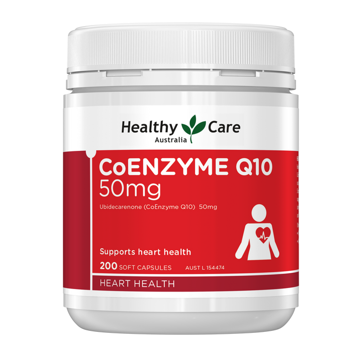 Healthy Care CoEnzyme Q10 50mg provides a daily dose of CoEnzyme Q10 (CoQ10), a powerful antioxidant enzyme naturally found in the body's cells, particularly in the heart. As CoQ10 production declines with age, supplementation helps maintain healthy CoQ10 levels, supporting cardiovascular health and healthy blood lipids.