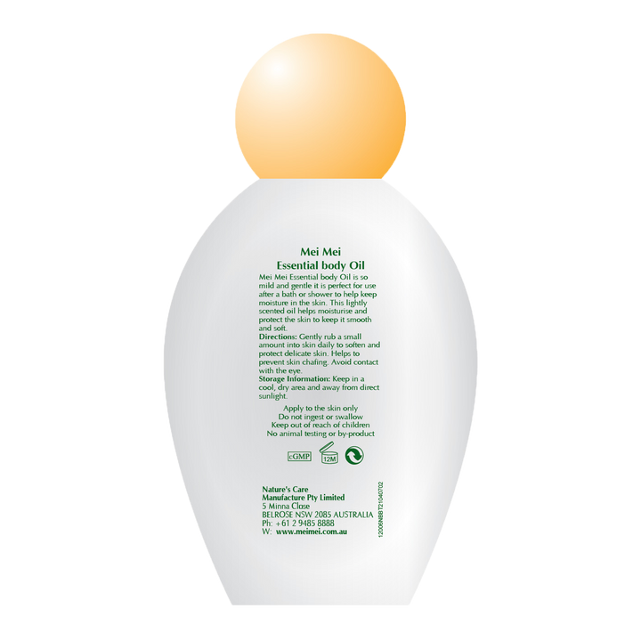 MeiMei Baby Oil is an ultra-light yet deeply nourishing formula, specially crafted with Sweet Almond Oil and Vitamin E to care for and protect delicate baby skin. Perfect for use after a bath, it helps replenish and lock in moisture, leaving dry and sensitive skin soft, smooth, and comfortable. Key Features: Provides nurturing hydration Ultra-light and gentle texture Enriched with Sweet Almond Oil & Vitamin E Non-greasy finish Key Naturally Derived Ingredient: Sweet Almond Oil (Prunus amygdalus dulcis)