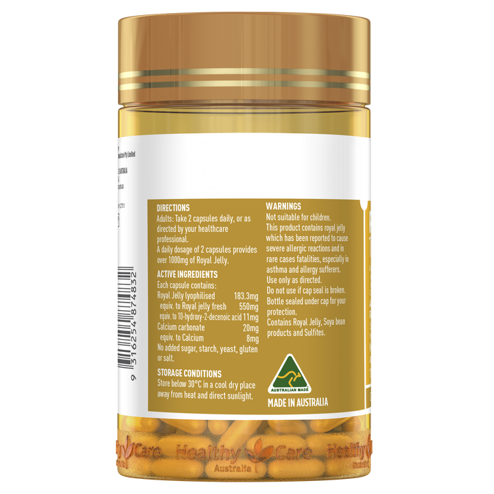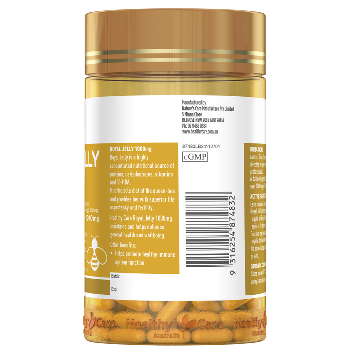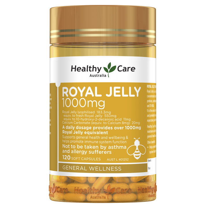 Healthy Care Royal Jelly is a nutrient-rich natural secretion from bees, traditionally used as a tonic to promote vitality and general wellbeing. Carefully formulated with high-quality royal jelly extract, it preserves the full spectrum of proteins, carbohydrates, vitamins, minerals, and 10-HDA (10-Hydroxy-2-decenoic acid), a key active compound unique to royal jelly.