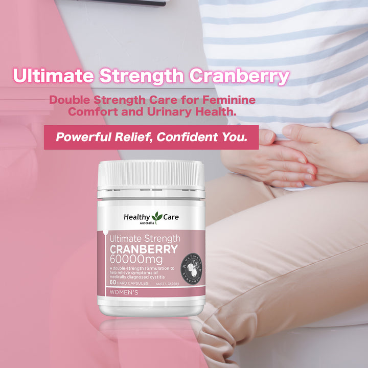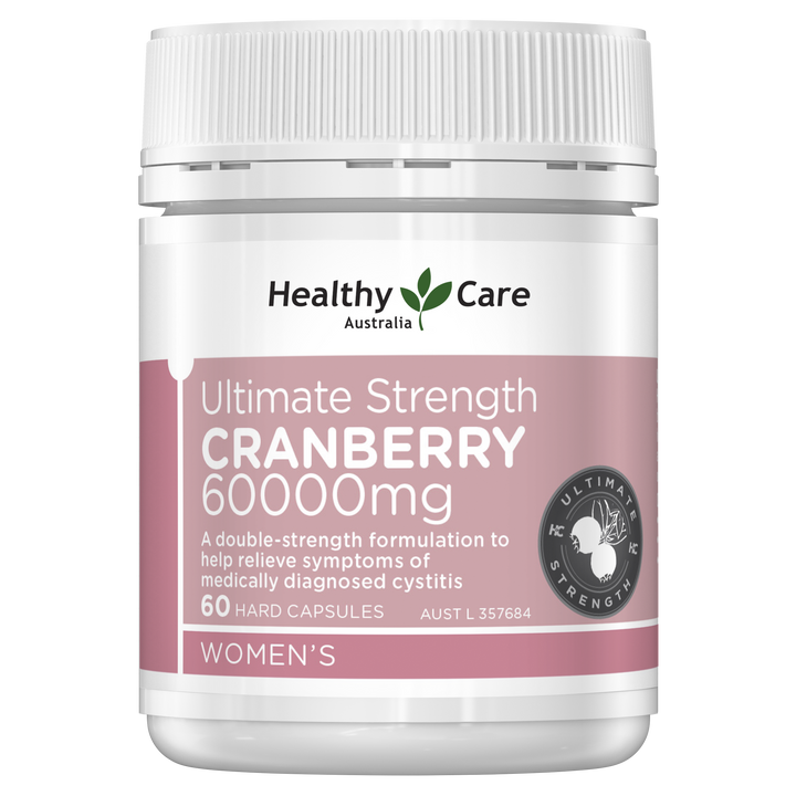 Healthy Care's Ultimate Strength Cranberry 60000mg boasts a potent dose of antioxidant properties to help reduce free radical damage to body cells and will help to relieve symptoms and reduces the occurrence of medically diagnosed Cystitis.